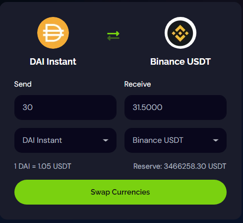 Swap instantly via DAI instant swap option, user get asset instantly to receiver wallet