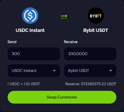 Swap instantly via USDC instant swap option, user get asset instantly to receiver wallet