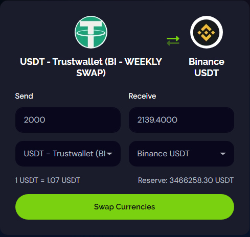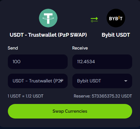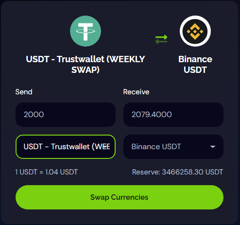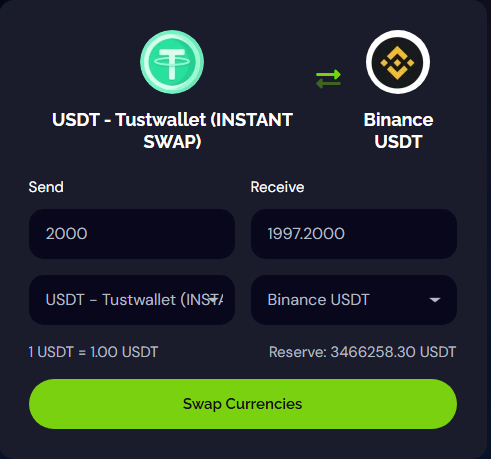 Swap USDT directly from your trustwallet to your desire receiver wallet on Sugerfx.com